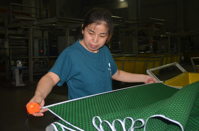 8月17日,公司花布车间后处理工段甲班拉幅机出检工刘卫上夜班。工作中,她丝毫不敢懈怠,一会儿拉过落进布车内的花布面料查看,一会儿把摞高的布用力按下去,一会儿又拿起卷尺去量幅宽。刘卫说:“持续不断的精益生产培训,使我们意识到:只有稳定的质量,企业才能被市场所接受。因此,我们每一个班都力争在产品质量上做到100%。”