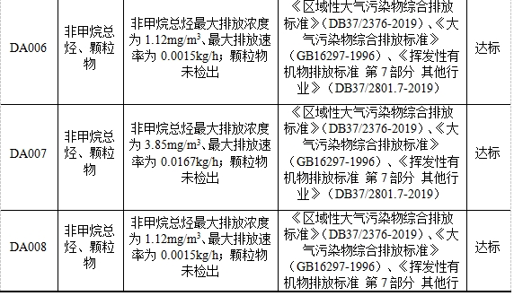 注:①排气筒编号来自排污许可证对排气筒的编号;