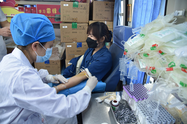 献血队伍中,既有工作多年的老同志,也有刚刚参加工作的新员工。献血车就位后,员工在滨州市中心血站工作人员的指导下,认真填写献血登记表、测量血压、抽血化验,经血液检验合格后开始献血。“我参加无偿献血的初衷,就是想尽自己的一点力量。”在场参与献血的一名员工说到。简单的一句话,展现的却是充满温暖情感的无私之爱。